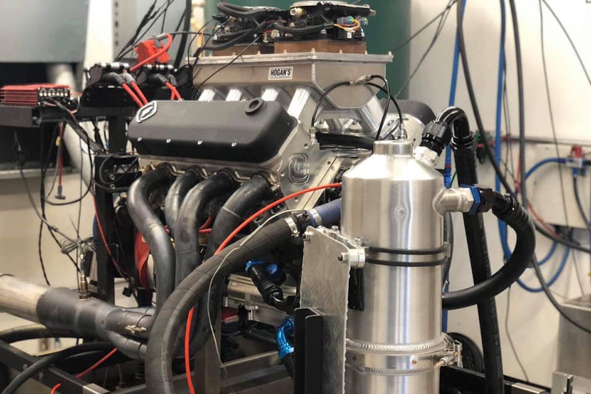 Obviously, one of the most important parts of making an engine live at elevated engine speeds is having a stable valvetrain. Here, Strader runs the engine on his in-house Spintron to validate the valvetrain components and demonstrate the system’s stability.