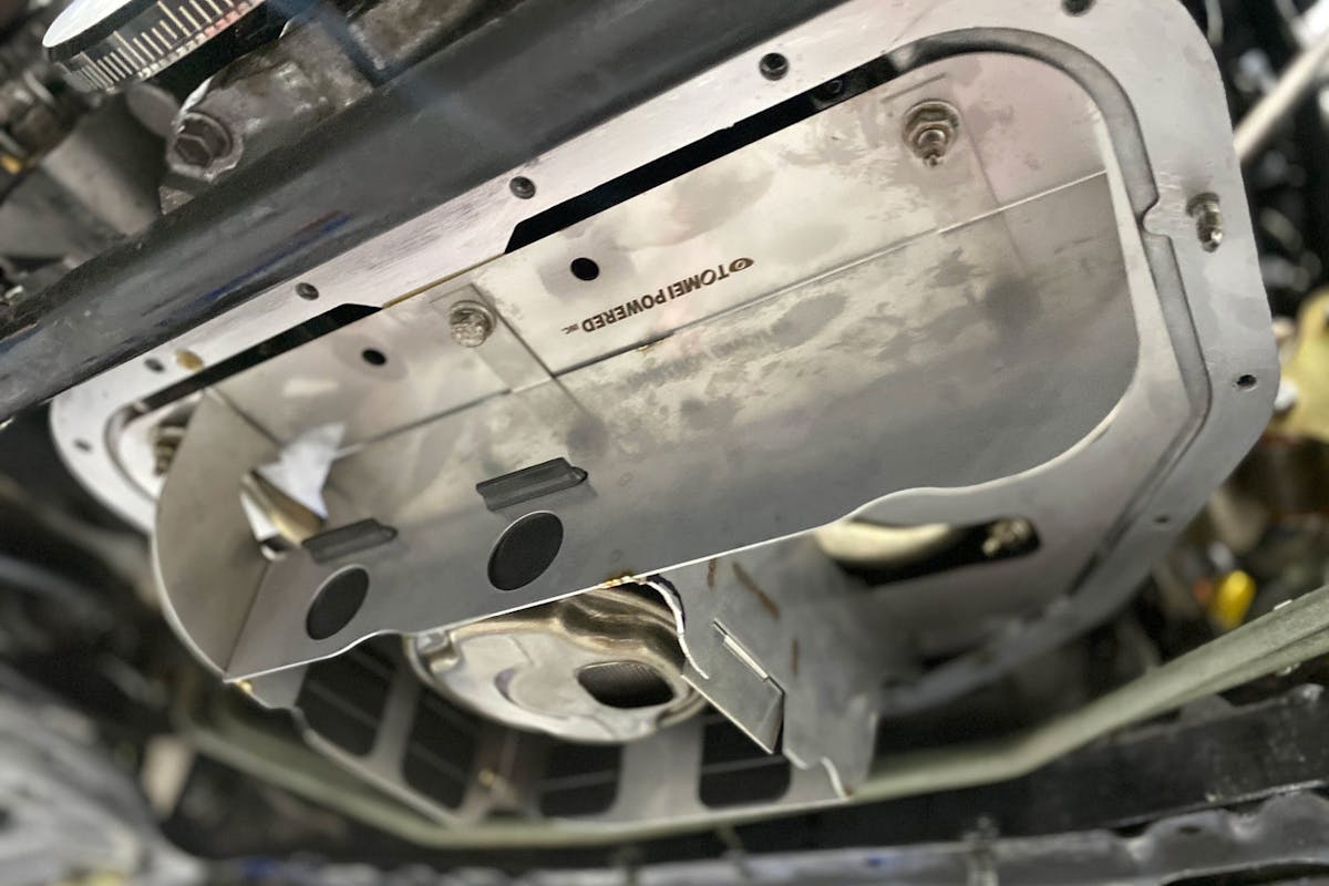 As far as the engine was concerned, there were only two more things needed. A Tomei timing belt, and crucially, a Tomei baffle in the factory oil pan. Since he’d perfected the snappy transition and was now comfortable throwing the car around, he was naturally concerned about oil starvation.