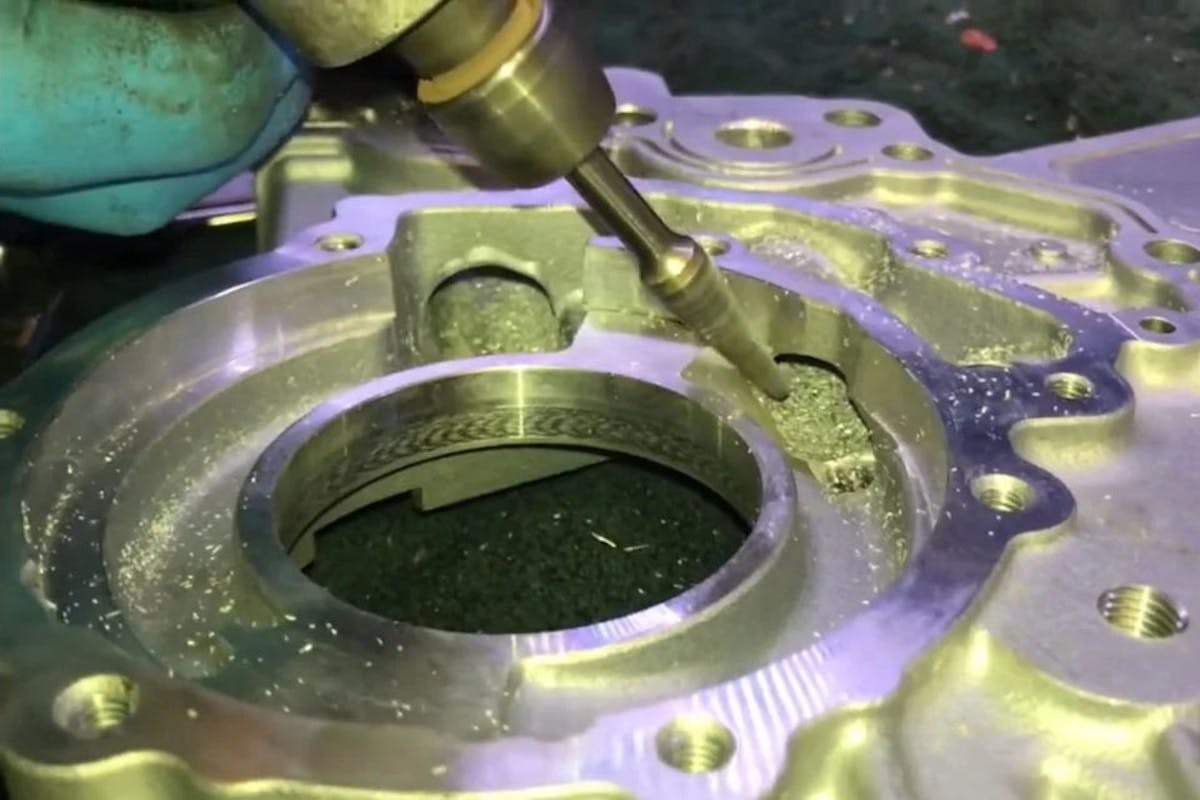 To ensure just a little more oil flow, Mayer journaled out the hard edges inside the oil pump.