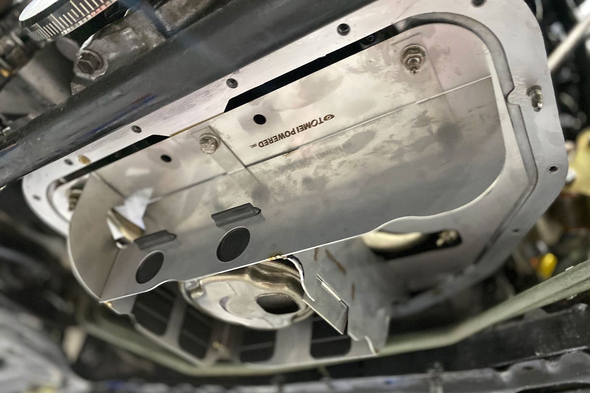 As far as the engine was concerned, there were only two more things needed. A Tomei timing belt, and crucially, a Tomei baffle in the factory oil pan. Since he’d perfected the snappy transition and was now comfortable throwing the car around, he was naturally concerned about oil starvation.