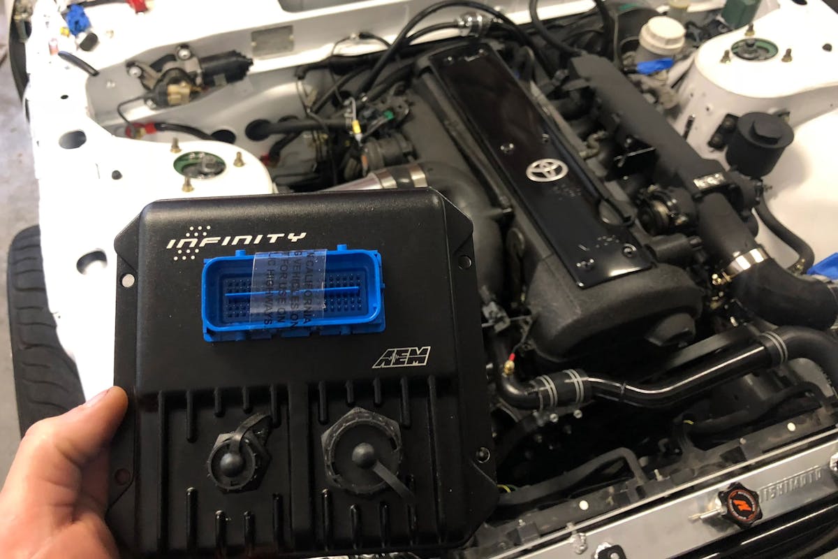 Fortunately, Mayer already had a custom harness that worked with the AEM Infinity ECU.