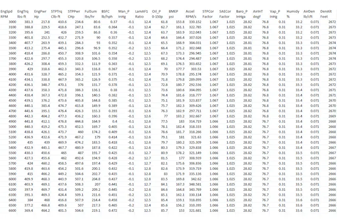 These are observed power numbers, which means they have come directly off the dyno, based on existing atmospheric conditions. To compare power readings from different days with different weather conditions, engineers created a correction factor. This factor takes into account the three most critical atmospheric variables: pressure, temperature, and vapor pressure — also known as humidity.