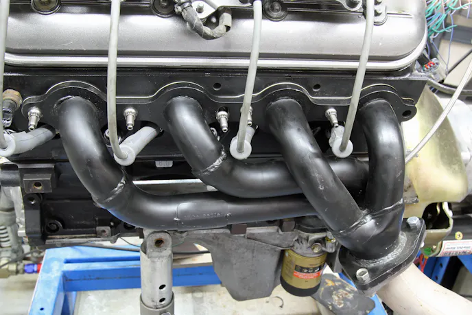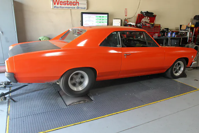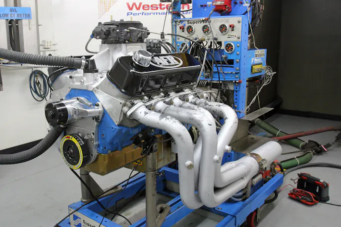 Another trick that can go unnoticed is the configuration of the headers used in testing. For example, Westech Performance prefers to use its own dyno room headers, not only because they allow easy access to spark plugs, but also because the primary tubes extend almost horizontally from the engine. This straight shot from the exhaust port tends to improve peak horsepower with no cost to low-end power. It’s a small thing but it all adds up.