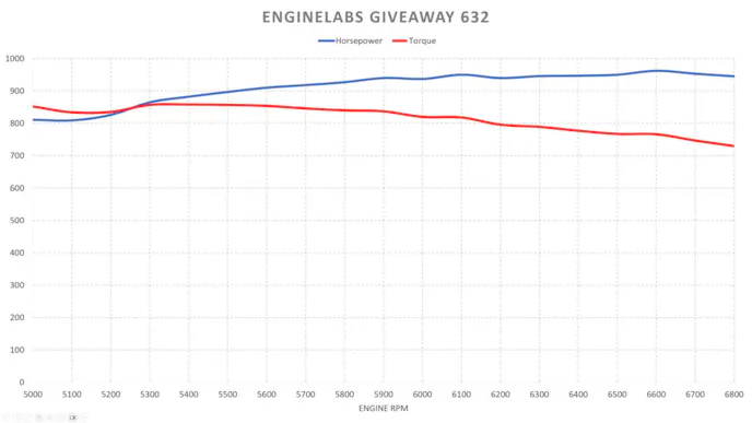 Average horsepower across the 5,000 to 6,800 sweep was 911 horsepower, and torque averaged out to 815 pound-feet. As you can see in the graphs, the curves are far flatter than anyone expected. “It seems like we just ran out of camshaft,” says Bacalis. “When an engine flattens out like that and doesn’t respond to any changes, there’s usually a single component that is maxxed out.” As a reminder, the 632 has a .729/.708-inch lift cam with 264/278 duration from Cam Motion, so it’s no slouch. To hit the magical four-digit number, we’d need either a less stingy dyno or a less street-friendly camshaft.