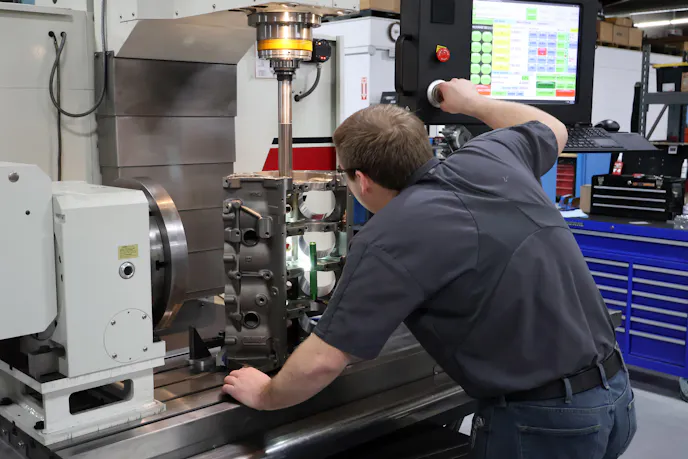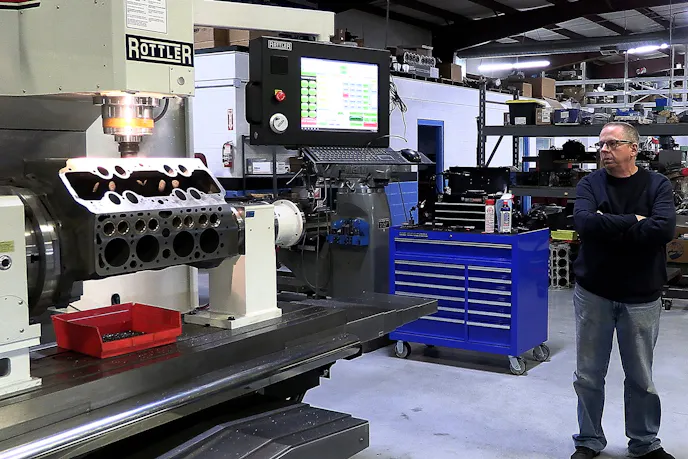 Now, with a CNC machining center dedicated to block work, he says, “we can do that same job in two-and-a-half to three-and-a-half hours.” And beyond the time saved, he says the consistency is remarkable. “I won’t say it does a more accurate job, because we can be accurate manually, but (manual work) is very operator sensitive. You may have a fantastic manual machinist, but if he retires or takes a job somewhere else, you’re right back to ground zero. Meanwhile, the CNC machine never complains and, as long as you keep it serviced, never takes a day off. You need a good operator, but these days it’s a lot easier to find a quality CNC operator than a competent manual machinist.”