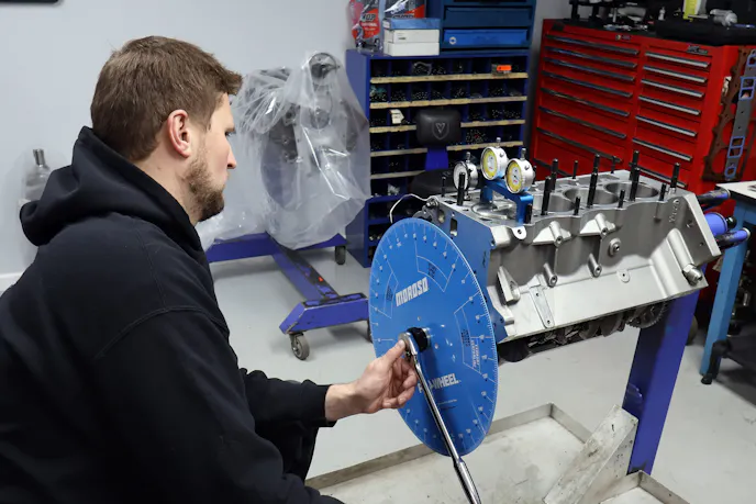 The difference was night and day. “Once we got the cylinder hone, we kind of got addicted,” Jake laughs. Suddenly they could hone a block unattended, leaving that person free to work on assembly or other tasks. “We’re in here and the thing’s honing a block, and we’re in the assembly room working on something.”