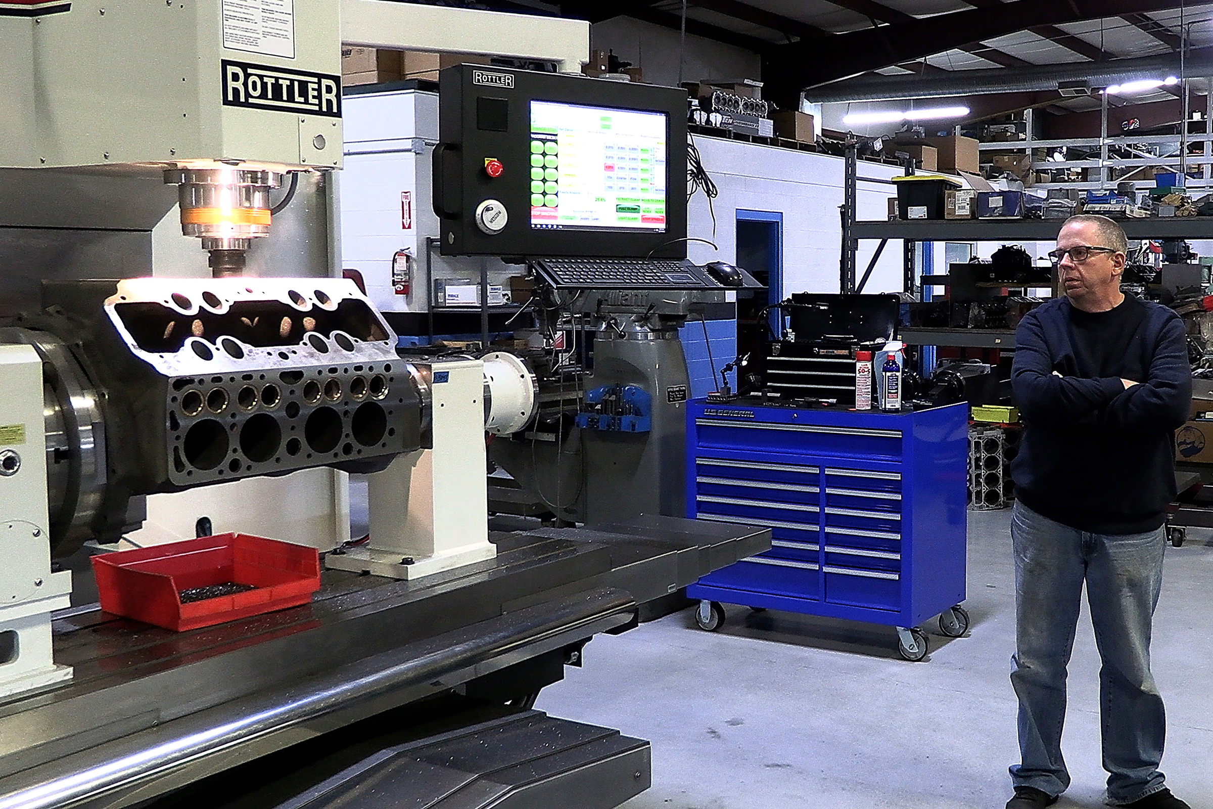 The difference was night and day. “Once we got the cylinder hone, we kind of got addicted,” Jake laughs. Suddenly they could hone a block unattended, leaving that person free to work on assembly or other tasks. “We’re in here and the thing’s honing a block, and we’re in the assembly room working on something.”