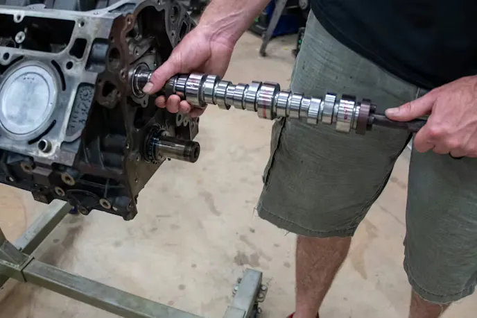 Manufacturers use cast cores to keep costs down, while billet cores serve high-performance applications that demand superior material quality. Either way, the manufacturing process involves precision grinding with the use of computer numerical control (CNC) machines. The CNC process allows for precise control and repeatability across production runs. CNC grinders can achieve tolerances in the ten-thousandths of an inch, ensuring lobe lift and timing accuracy. Surface finish is a critical step for long-term reliability, and each camshaft lobe is then polished to maintain proper contact between the cam and lifters. Depending on the material and application, the cam may also undergo heat treatment or nitriding to further harden the lobe surface.