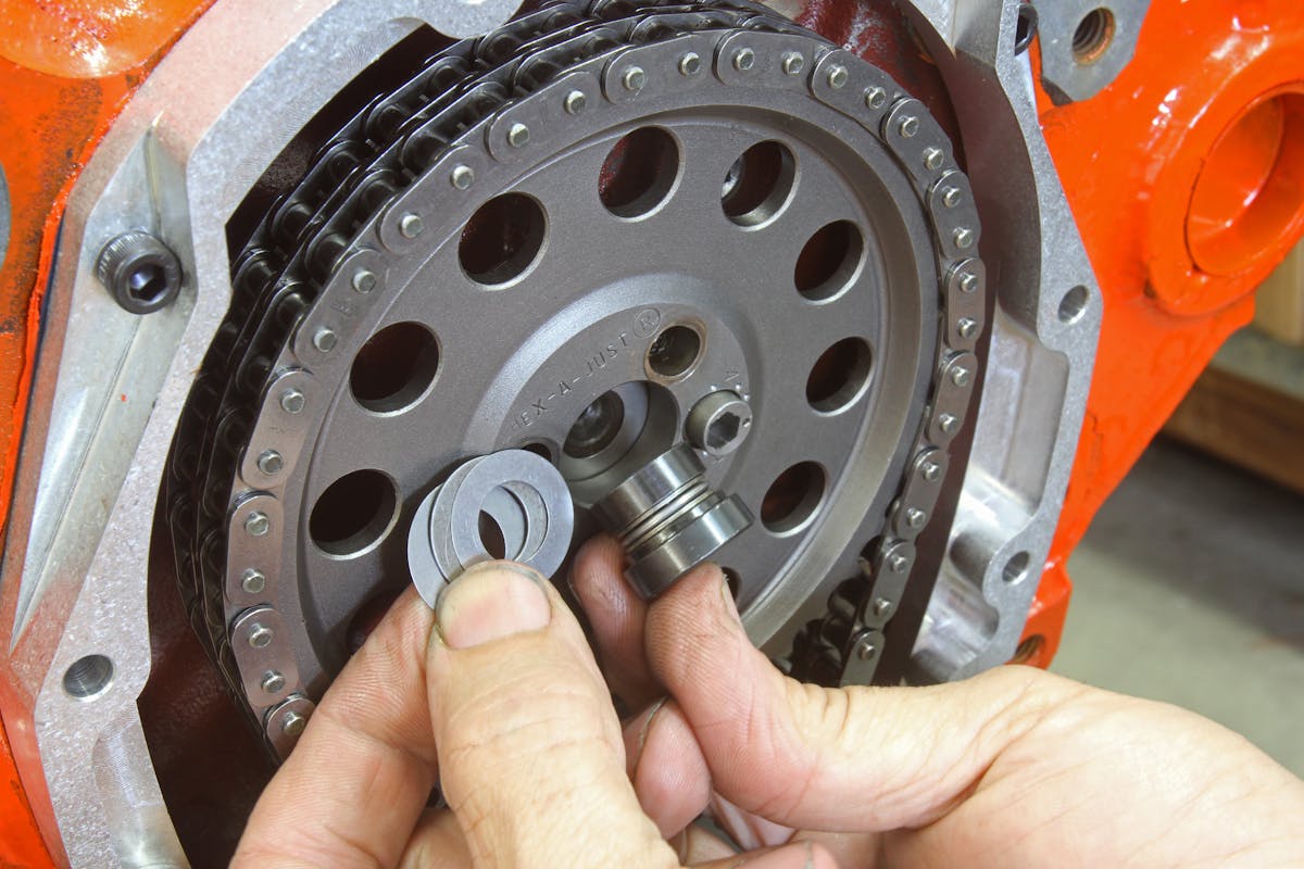 Even with this requirement, converting an older engine, like a big-block Chevy, to a roller cam configuration isn’t that difficult. Most cam companies like Comp, Isky, Lunati, and others sell cam buttons that will take up the space between the cam gear and the timing chain cover. It’s then up to the engine builder to install the button, measure the endplay and adjust the system to limit the cam movement to between 0.003 and 0.010-inch.