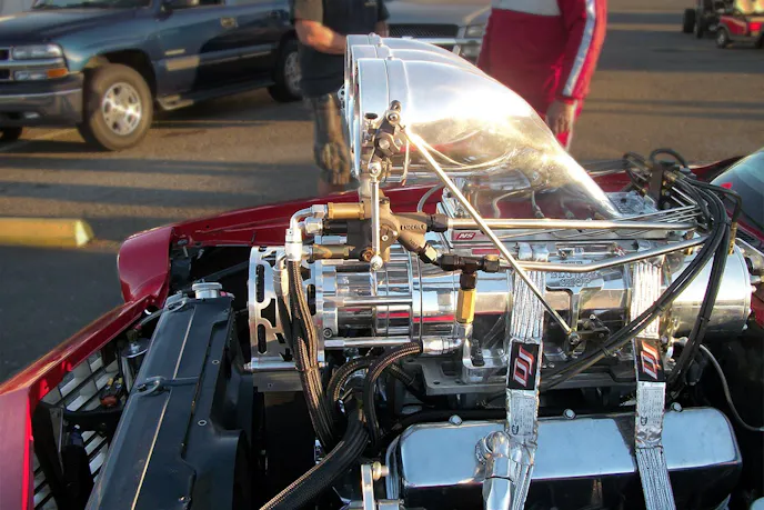 • Roots supercharged methanol Hemi head engine with 14 psi of boost: