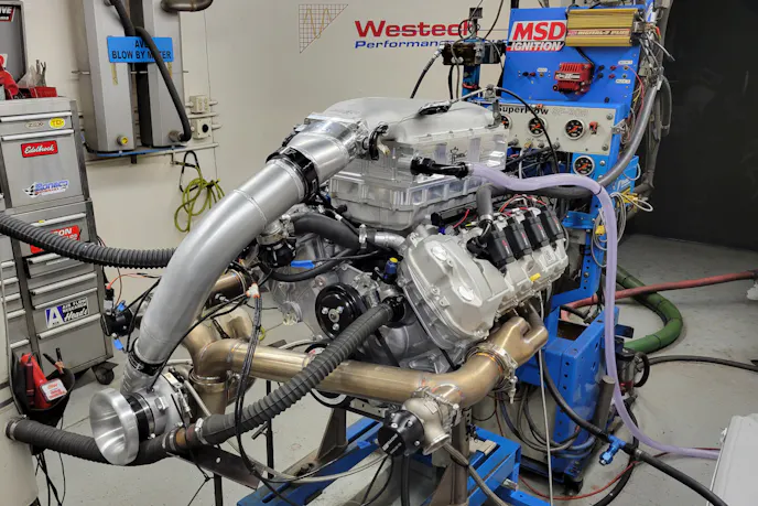 As we rolled into Westech Performance Group, the team was already hard at work getting the 5.3-liter engine set up on the SuperFlow 902 engine dyno. By the afternoon, the engine was hooked up, wired, and plumbed, and a quick fire-up to ensure there were no leaks was performed. Per the rules, initial fire-up and break-in, if needed, would not count towards the official dyno time. So, everything was shut down and everyone got some sleep.