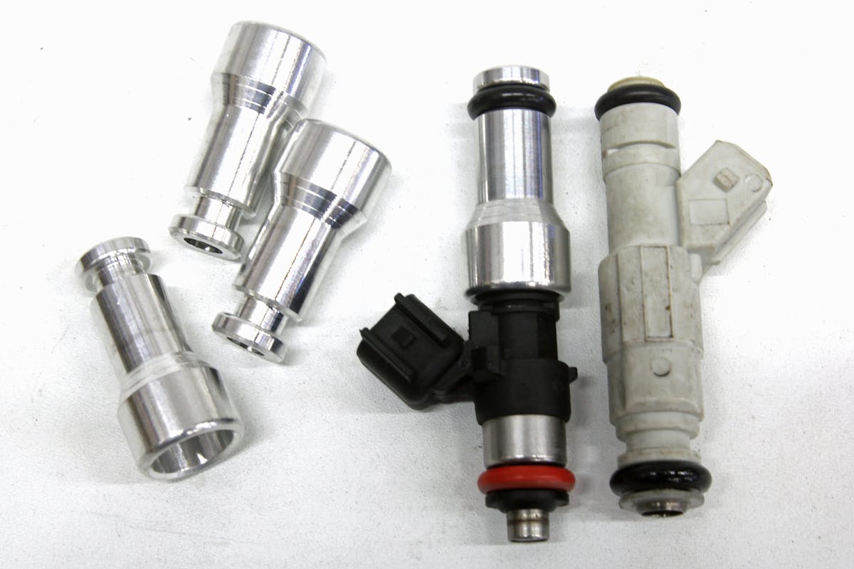 Swapping these newer, shorter injectors, in taller intake manifold applications opens up the opportunity for aluminum extension fittings that can increase the injector length to adapt these injectors to earlier applications. For example, ICT Billet offers three different length adapters for specific applications. We’ve listed their specs in a separate chart.