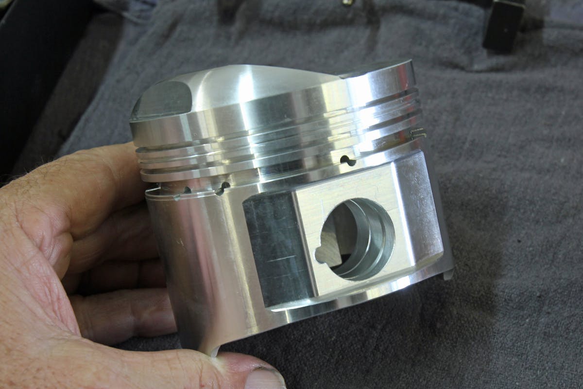 With the fixed 3.00-inch stroke defining the bore size, the bore diameter came to 3.562 inches. To accomplish that, Freudiger contacted Arias Pistons, who built a set of pistons to work with a set of GRP aluminum 5.70-inch rods and the 3.00-inch stroke. Since the goal from the beginning was running on nitro – compression wasn’t a huge concern because the static numbers would be relatively low anyway. Once all the variables played out, compression ended up at 7:1, although Freudiger would have preferred to have more. “The problem is those crappy heads,” Freudiger says. “The chamber is just too big.”