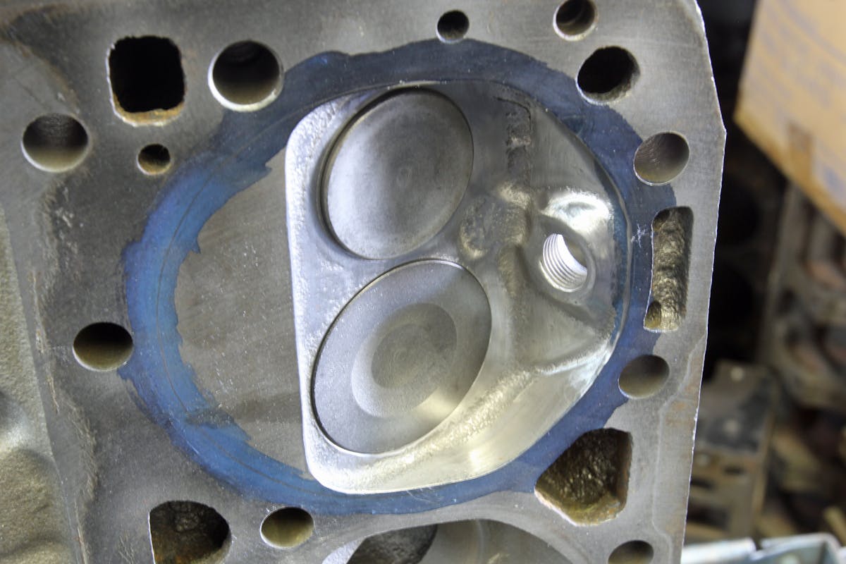 In this particular case, it’s all in an effort to build an old-school dry lakes / Bonneville class V4 configuration. But it may also be inadvertently starring in its own unique version as it is among the smallest displacement small-block Chevys ever built. When you squeeze the bore down to 3.562 inches and combine it with a 3.00-inch stroke 283 crank, you end up with a tiny dancer displacing a mere 119.6 cubic inches. We added the decimal place for sheer moral support.