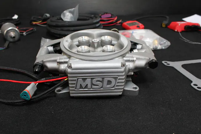 MSD even includes fuel line to make the connection from the fuel tank to the throttle body. According to Ryden, “The operating fuel pressure for the system is between 30-75 psi if you are using a PWM system (Pulse Width Modulated) returnless system. If you have your own, or installed a regulated system, the required pressure will depend on horsepower. Most engines will use close to 45 psi while engines pushing 600 HP will need closer to 70 psi.”
