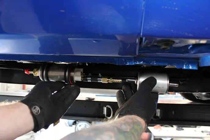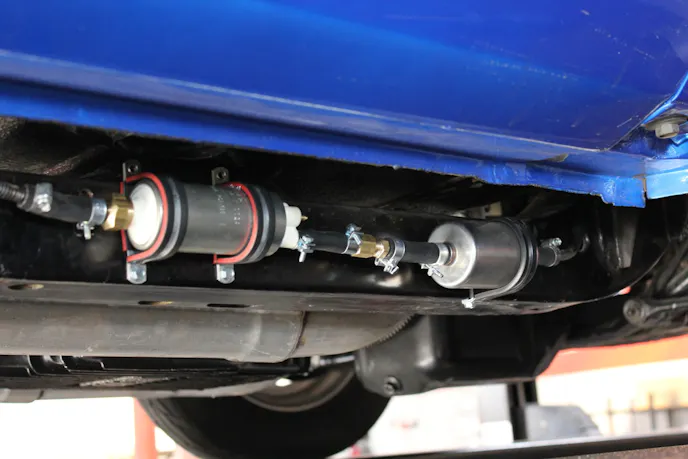 Everything needed is supplied in the kit to make a complete fuel supply from tank to engine. We decided to run the system as a returnless fuel system on Corey’s car, which meant that all we had to do was locate a suitable spot for the fuel pump and filter and install the fuel line from the gas tank to the pump and filter, then from the filter to the throttle body. Cory’s car had an off-the-shelf electronic fuel pump already installed, so we located the MSD fuel pump in the same spot and used the existing positive and ground wires to power the pump. It simply doesn’t get any easier than that.