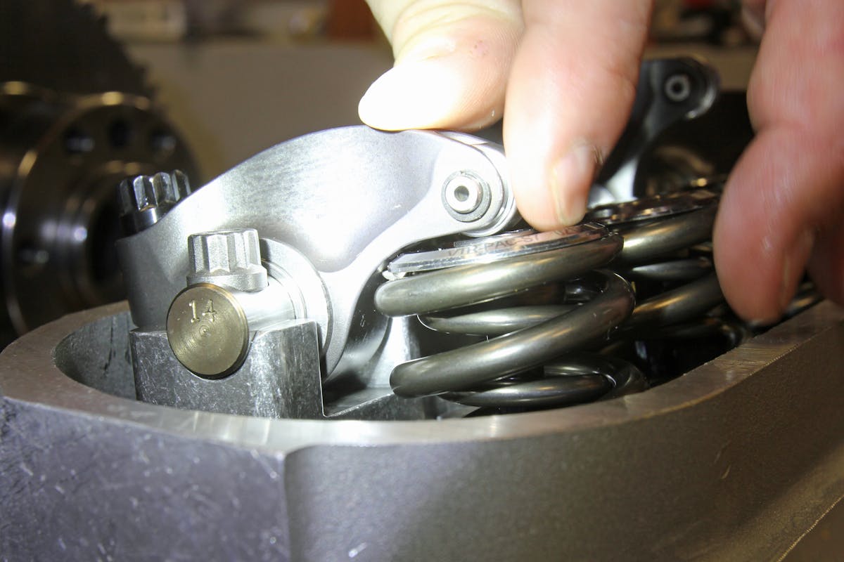 Both the intake and exhaust valves will be DLC (diamond-like carbon) coated for durability while working within the 47cc chamber. The RHS heads were originally developed to improve port flow, peaking at around 0.650- to 0.700-inch lift. Strader commissioned Slick Rick Racing Heads in Magnolia, Texas to rework the heads to push flow beyond 0.850-inch lift, which is still far short of the camshaft’s one-inch lift capability. The current RHS heads flow around 410 cfm on the intake side, with new numbers that will likely be nearer to 450 cfm.