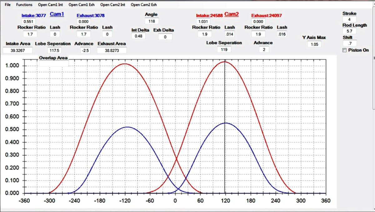 These details underscore why the cam core had to be a 60 mm chunk of steel. Godbold progressed through several lobe designs before landing on one that would not devour parts after just one 11,000 rpm venture. The plan was to have a package that would last for a reasonable number of passes. Lobe design is much more than just establishing lift and duration. It’s a complicated formula of creating a critical lifter acceleration rate both on the opening and especially on the closing side as the valve approaches the seat. The term “asymmetrical lobes” applies here, so that the closing side accelerations are not the same as the opening side.