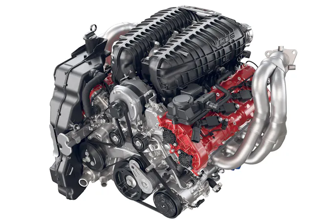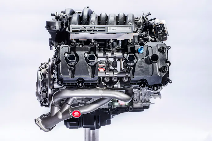 This engine is based on Ford’s Modular engine but suffers from some design constrictions. The most glaring is that the Modular engine uses a somewhat restrictive short bore-spacing of only 3.937 inches for the cylinder block. This limits bore size, so in order to increase displacement to 5.2L on the Voodoo engine, Ford engineers sized the bore diameter at 3.70 inches but increased the stroke to an almost-square 3.66 inches.