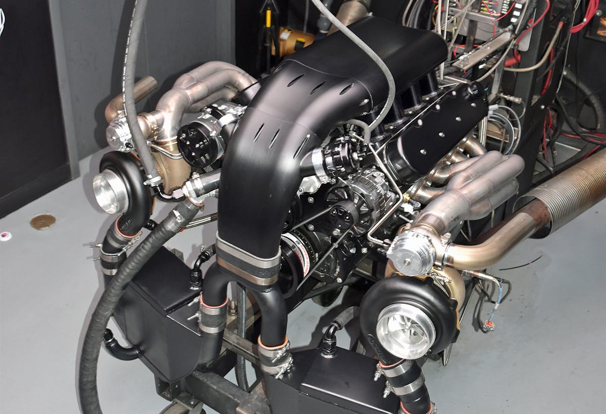 Displacement and combustion pressure work hand-in-hand to generate tremendous amounts of power. After breaking in the engine, Nelson began adding more and more boost to the equation, taking readings on his dyno with varying amounts of pressure. At a very modest 6psi of boost, the LS generated 876 horsepower at 6,200 rpm with a peak torque of 775 ft-lb reached at 5,000 rpm.