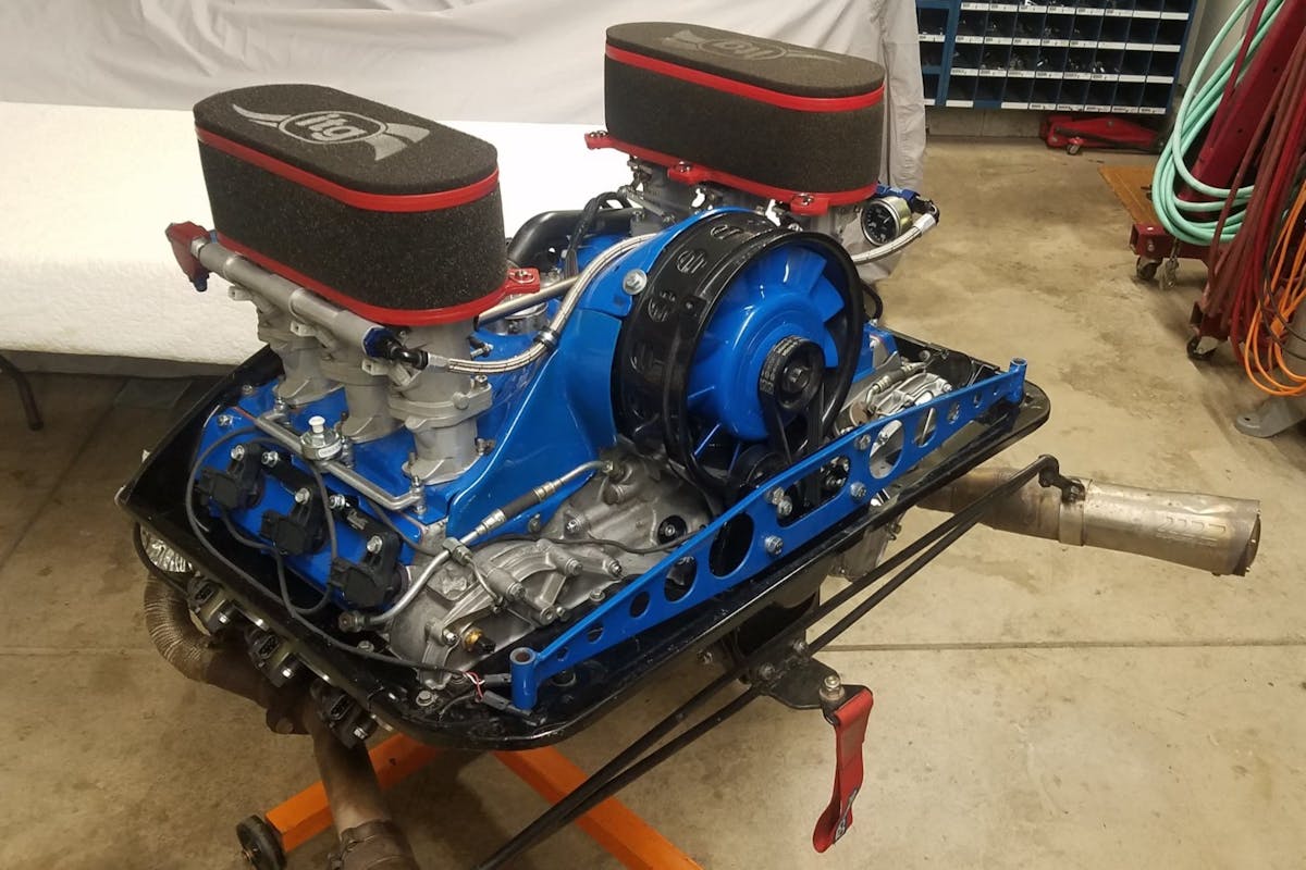 The engine received new head studs, Nikasil-lined cylinders, JE 11.5:1-compression ratio pistons, Pauter Rods, and Borla 46 mm individual throttle bodies with 36-lb/hr high-impedance injectors. Porsche Carrera tensioners and serpentine belt drive were used, along with a twin-coil-on-plug ignition, and an Electromotive TEC3 GT engine management system.