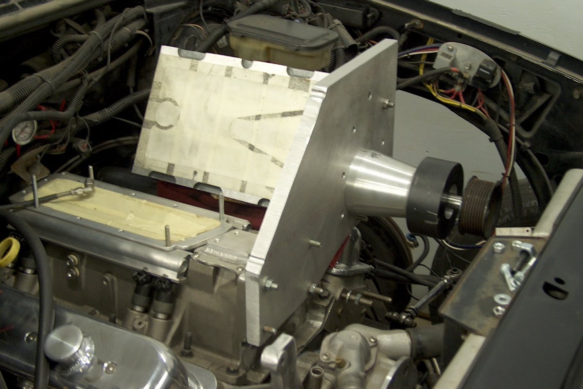 Dan Dreisbach modified a 1969 Pontiac Grand Prix A/C evaporator core to serve duty as an air-to-water intercooler. He tucked it into his hand-built housing, and whipped up everything in his shop needed to make a Ford Lightning supercharger force-feed his 1996 LT1.