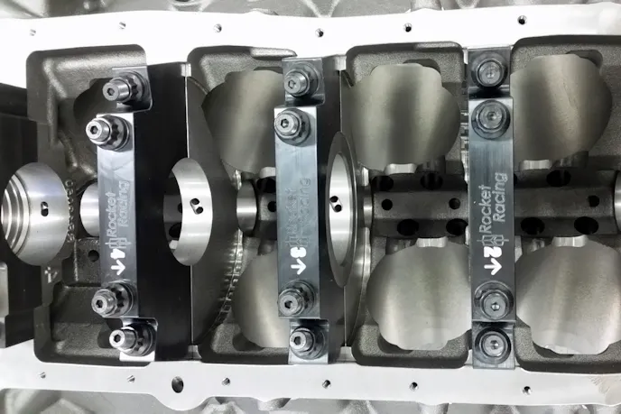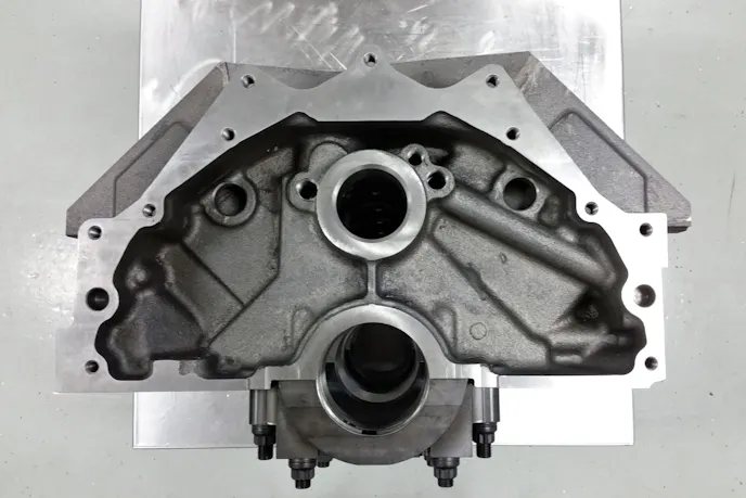 Starting with better materials, the Rocket Racing Olds blocks are cast in two separate versions; the standard is a proprietary iron alloy, with a Compacted Graphite Iron (CGI) version for those looking to make ridiculous power numbers on a regular basis.