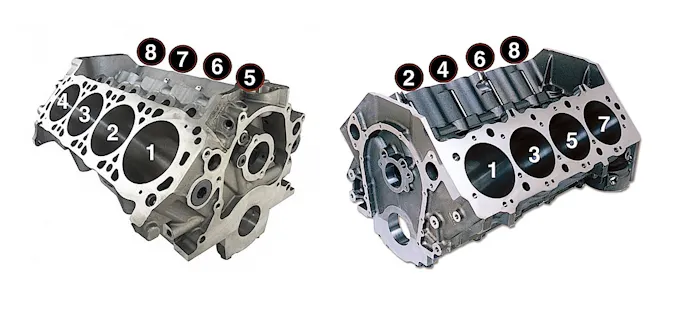 Based on an engine configuration of a 90-degree V8 block spinning a cross-plane crankshaft, there are only eight possible firing-order combinations. Actually, there are 16 because GM and Chrysler engines are left-bank forward and the automakers number their cylinders differently than Ford, which is right-bank forward. With a little math and comparison mapping, we can find the common ground for the eight firing orders (see chart below) available to the manufacturers.