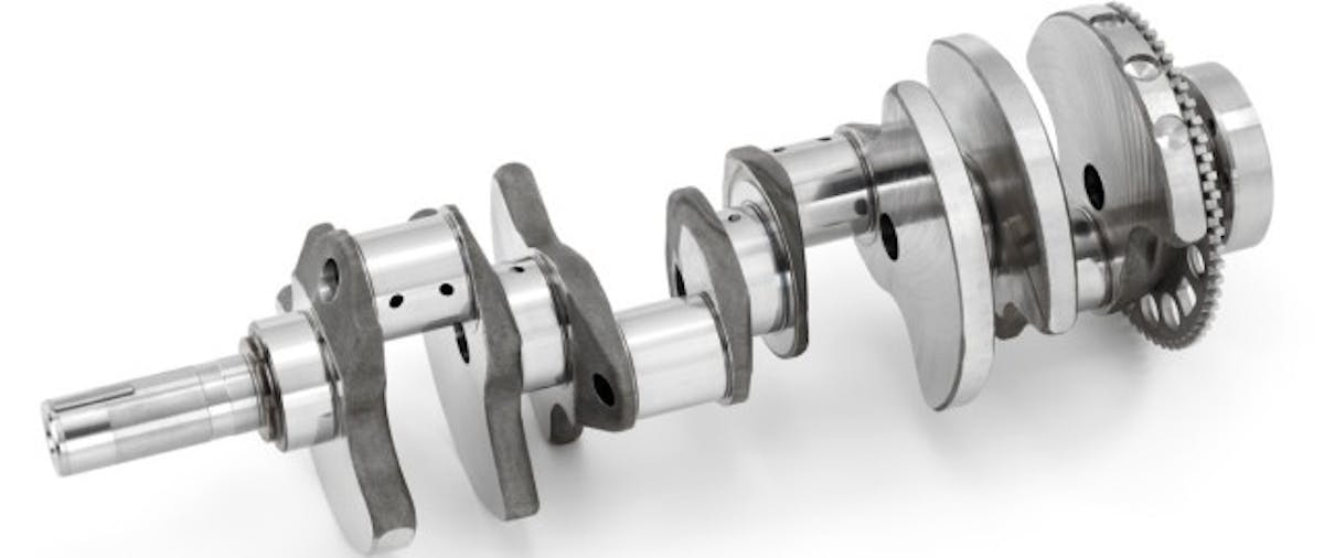 The higher cylinder pressures produced by the supercharger required upgrades in the rotating assembly. These changes included a 1528MV forged-steel crankshaft with tungsten balancing inserts, high-strength powder-metal connecting rods and a lightweight aluminum damper. Since the compression ratio was lowered to 10:1, a new piston design was required. GM came up with a forged alloy that features a flat-top crown, then beefed it up with internal ribs similar to the LS9 piston and included a DLC wrist pin. Ring selections were also addressed, stepping up a PVD-coated top, chrome-coated second and nitride oil control.