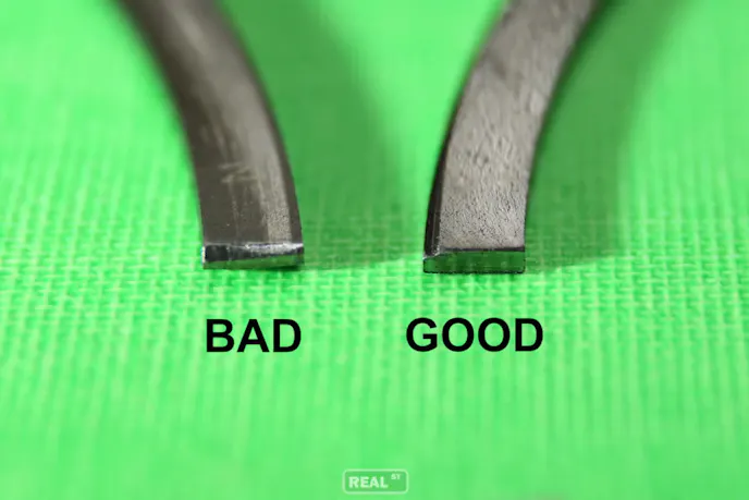 Another thing to be cautious of when filing your rings, is to ensure that the end is square to the file wheel. “When you have the ring in the filing tool, you have to make sure that you hold the end square against the cutter, so that you don’t put taper into the end of the ring.” Meagher says. “Also, only file in one direction and only work from one side of the ring to open the gap. Don’t file a little from one side, and then a little from the other.”