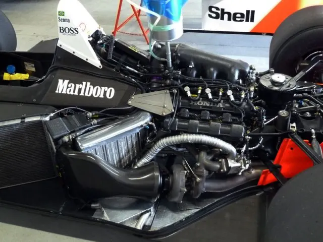 In the case of the MP4-4, 1988 was the last year for the turbos before a mandatory switch back to atmospheric engines. McLaren opted to retain the turbo engine rather than preempt the changes, as many teams did, and spend the season refining a new atmospheric engine within the package. In order to improve on the packaging, they began using a smaller Tilton clutch which allowed for the engine to be mounted lower. This allowed for improved airflow to the rear wing, thanks to a lower cowl, as well as reduced drag. Similarly, Mercedes’ engine design affected other areas of performance.