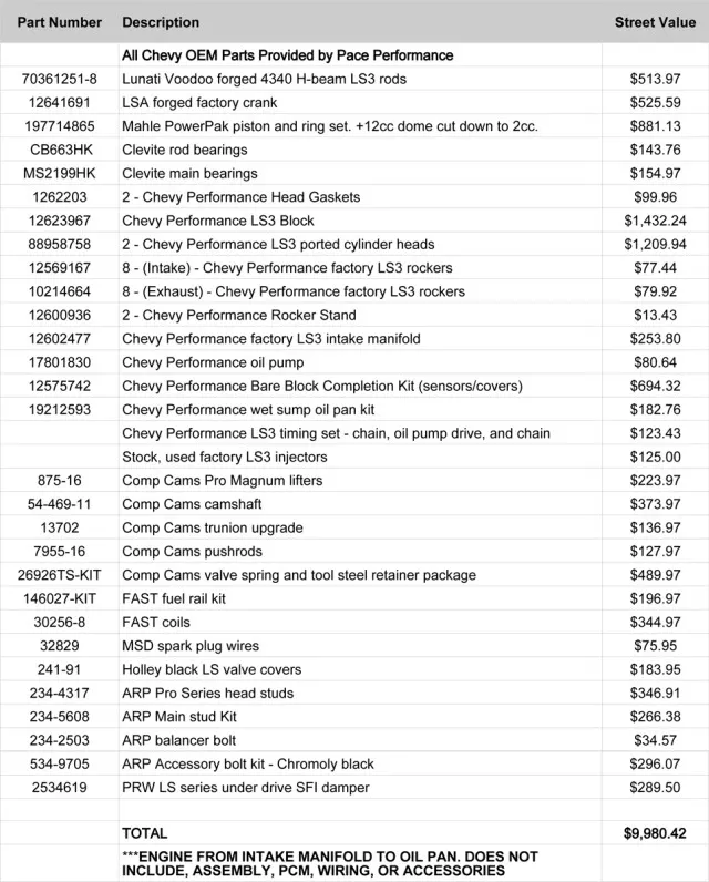 Chevrolet Performance also offers a kit that brings together all the final components you will need to seal up and complete an LSX or GEN IV production engine.PN 12575742 includes the following: