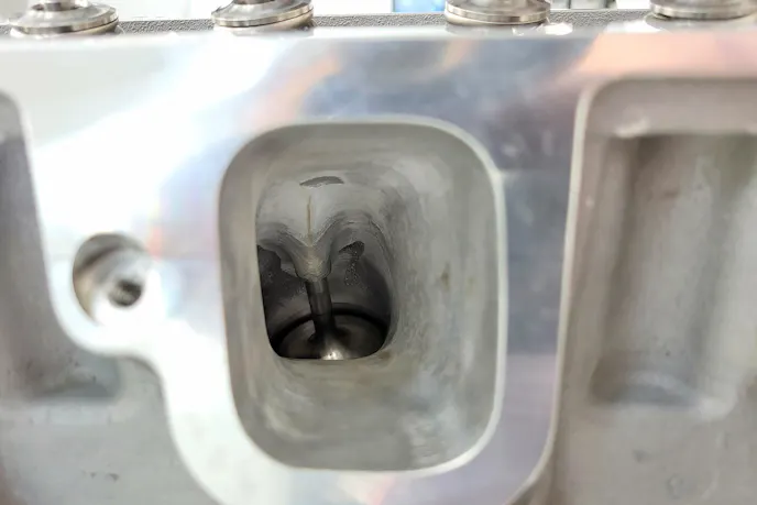 In the old days, stuffing that much valve into a smaller cylinder bore (the 5.3L’s cylinders are just 3.780 inches in diameter from the factory compared to the 6.2 liter’s 4.065 inches) was a great way to shroud the valves and actually hurt airflow. But, with the canted valve design of the LT’s cylinder heads, the valves are actually angled to open toward the center of the chamber, so this becomes a big improvement.