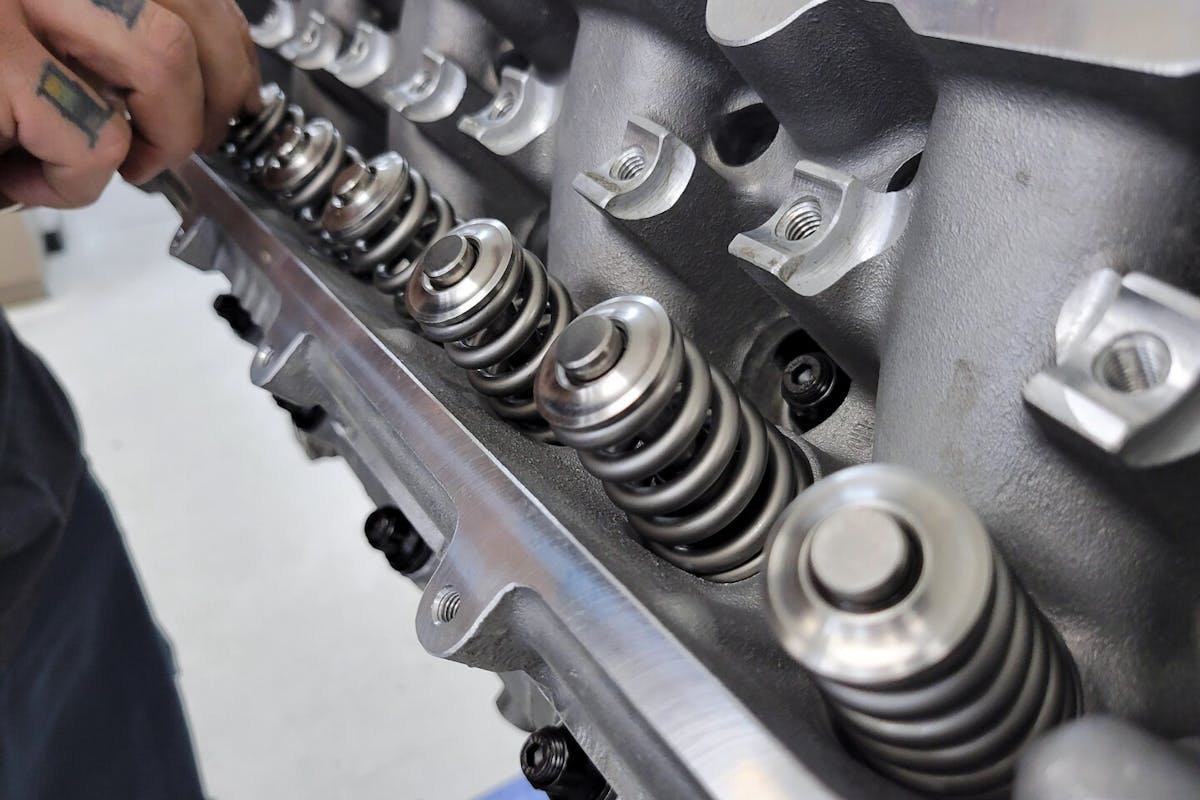Of course, high-flowing ports are useless if the air and fuel can’t make it into the combustion chambers, so the valve sizes have been increased to 2.060 inches for the intakes and 1.580 inches for the exhausts (up from 1.928 and 1.556, respectively). They’ve also swapped out the steel valves for lightweight titanium units.