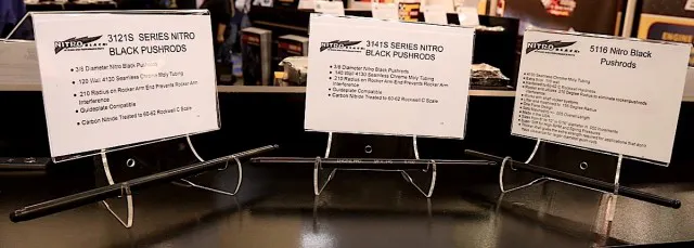 The Nitro Black line of 1-piece, 5/16 pushrods is constructed from 4130 steel with a .116 wall. They are carbon nitrided to achieve a 60-62 Rockwell C scale hardness, and are available in lengths from 6.000 up to 10.000 in .050 increments.