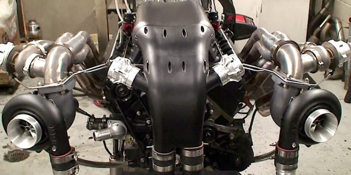 Boost is provided with a pair of NRE 72mm mirror-image turbos.