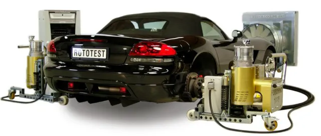 Of course, you will need a jack and wrench to remove the tires, then simply bolt each unit directly to the vehicle’s drive hubs. Each unit has its own coil-over suspension to guarantee minimal vibrations and a consistent testing environment. Just as with traditional roller dynos, different tests such as sweep or steady-state can be conducted.