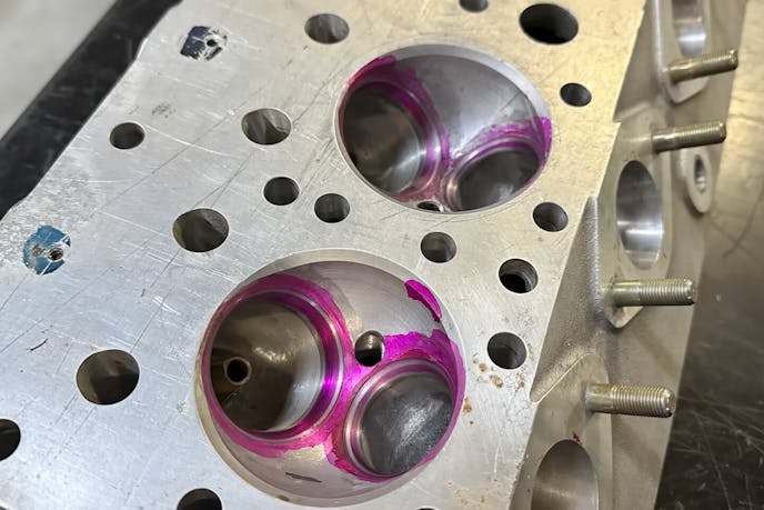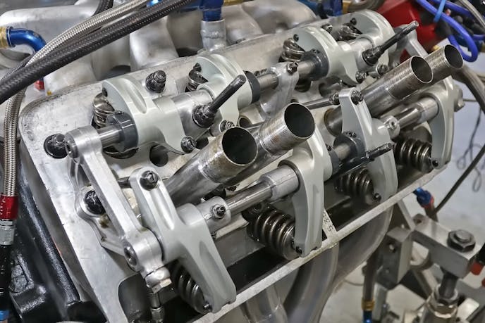 Being an extremely rare cylinder head, no big modifications to them were made, However, they were fitted with a set of modern stainless steel valves measuring 1.875 inches on the intake and 1.550 inches on the exhaust. The rocker arm system isn’t original, but follows the original design that is very reminiscent of an original Hemi valvetrain. Keeping everything under control is a set of Isky Chevrolet valve springs with 225 pounds of seat pressure.