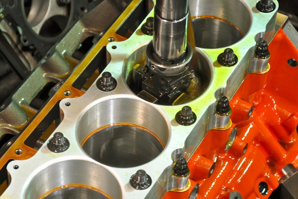 “We’re using the rough surface of the hone pattern to abrade the rings and make them seat,” Simon explains. The crosshatch pattern of the hone in the cylinder like a file on the outer surface, creating a perfect fit within the bore. While that may sound simple – and really, the actual mechanics of it are – the process to actually achieve that is a delicate balancing act, as that crosshatch is only abrasive for a limited amount of time. “The reason there’s a narrow window is because that hone pattern will be broken down in time,” Simon continues.