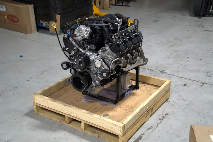 Like many other modern engines, the engine features coil-per-plug ignition with the coils mounted on the valve covers, and has a 58-tooth reluctor wheel pressed onto the crankshaft for an ignition signal. Out of the crate, the engine comes with a composite intake manifold with an 80mm throttle body, an 8-quart aluminum oil pan and cooler, along with factory short exhaust manifolds.