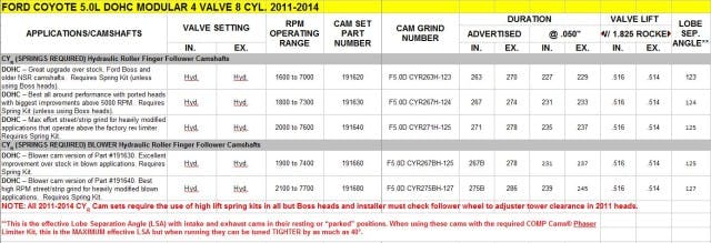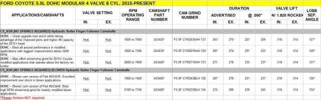 Lobe Seperation: 125 degrees“When the 5.0 Coyote first came out, all we had to go from was the OEM information we had acquired through the SEMA Technology Exchange and the older profiles we had designed for the older 4.6-liter and 5.4-liter applications,” said Billy Godbold of Comp Cams. “Because we had never physically seen the engine, tested it on the Spintron or dyno, and had never weighed or even held the new follower and valve combinations, we probably underestimated just how great of a job the Ford engineers had done when they reduced the package size, weight, and then increased the follower stiffness.”