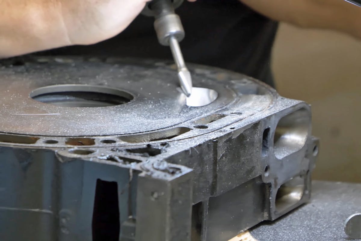 After resurfacing all the housings, and replacing some of the rotors, Ibarra went to work with a little bit of his magic port work. So magic, in fact, that you’ll see the intake ports blurred out in the video. More than just the equivalent of porting your intake and exhaust ports on a standard piston engine, changing the size and shape of the intake and exhaust ports on a rotary are akin to changing the lift and duration, as well as lobe shape on a camshaft. Just like some builders won’t share cam specs, it makes sense that Ibarra plays his cards close to the vest.