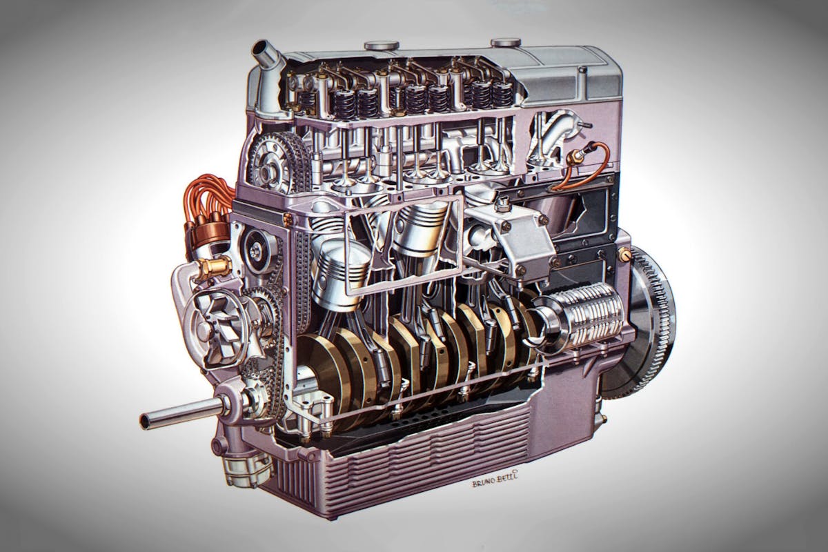Six years later, Lancia would again debut a narrow-angle V8 engine in the Dilambda (starting to pick up on the Lancia naming convention yet?). This version had less displacement at only 4.0 liters (242 ci), thanks to the 79.37mm (3.125 inch) bores and 100mm (3.937 inch) stroke packed into a wider 24-degree bank angle. Like the Trikappa before it and Volkswagen’s VR engines after it, the Dilambda again used a single cylinder head for both cylinder banks, albeit with an overhead valve configuration. The Dilambda picked up a little more power, to the tune of 101 horsepower at 4,000 rpm, with a rather unique side-draft carburetor that fed directly into the side of the block.