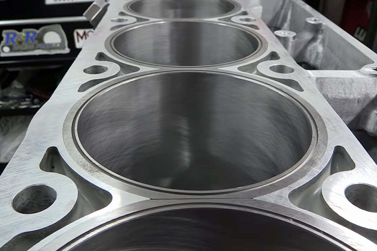 In order to save weight, Harrell decided to go with an aluminum 6.2L LS3 block, which came from a blown-up engine, literally sitting in the corner of his shop. After having it resleeved with Darton iron sleeves, the sleeves were bored to the stock 4.065-inch bore size and then machined for O-rings. In this case, the groove is .049 inch, while the O-ring wire is .051 inch, allowing for some mechanical grip.